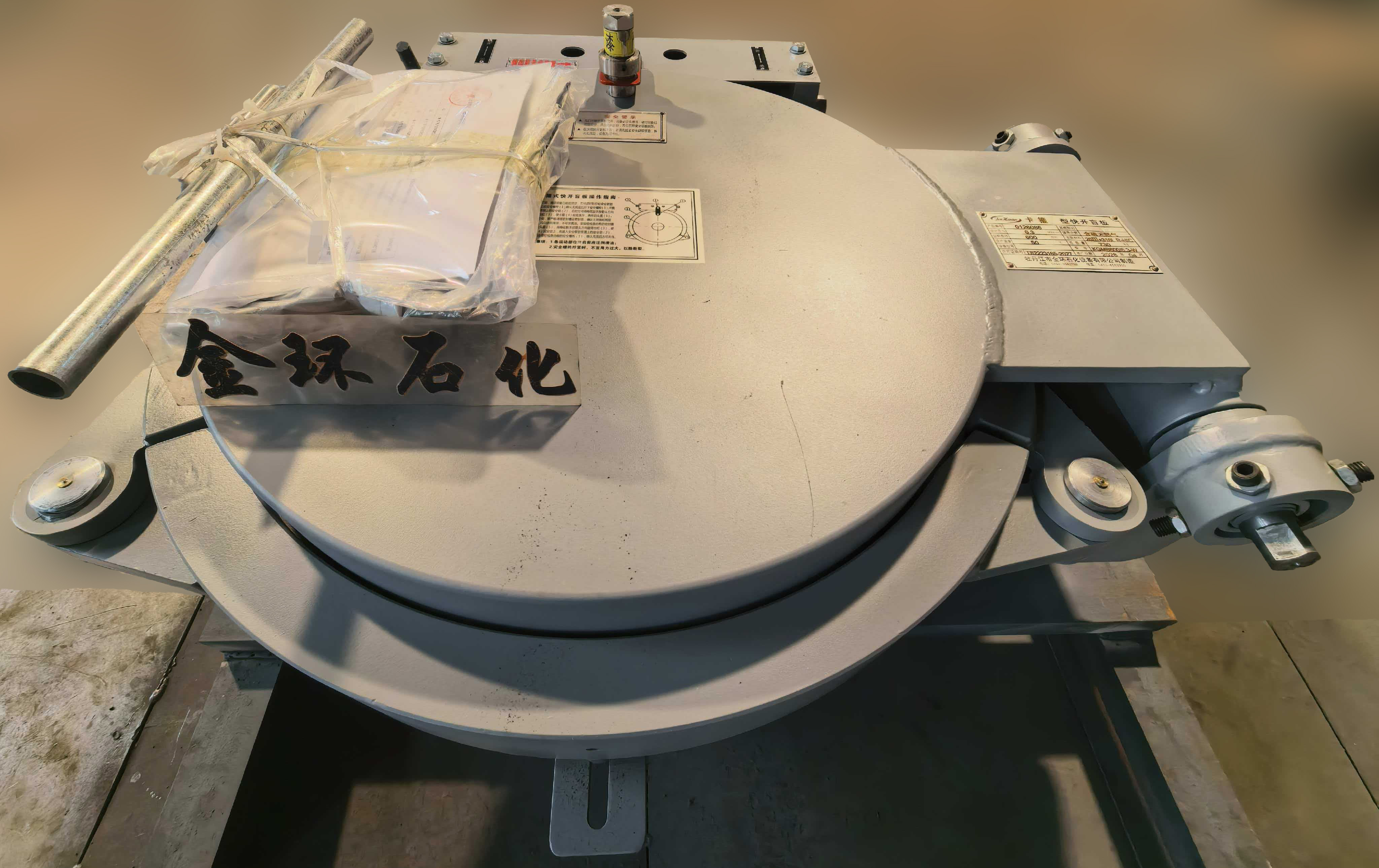快開盲板是用于壓力管道或壓力容器的圓形開口上的一種機械裝置。一般由筒體法蘭、頭蓋、勾圈或卡箍、密封圈、安全聯(lián)鎖機構(gòu)、開閉機構(gòu)、轉(zhuǎn)臂及短節(jié)(需要時)等部件構(gòu)成。